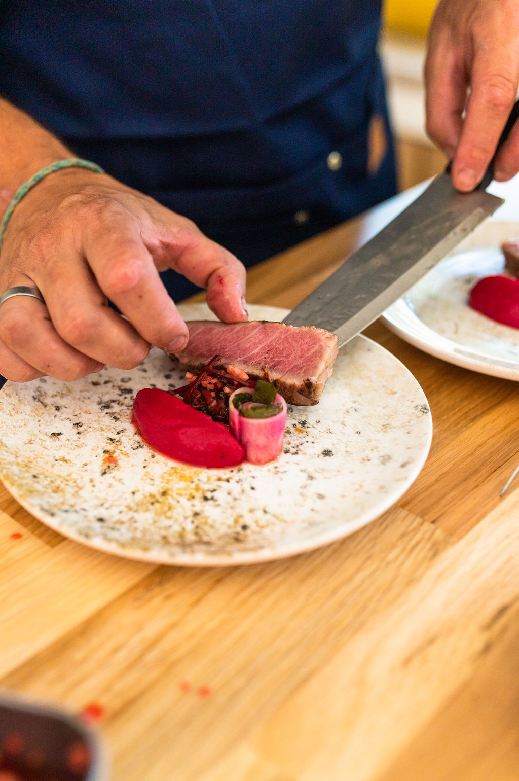 Une cuisine d’instinct et d’émotion, pensée dans le respect du produit, la simplicité du geste et la richesse du terroir. Chaque ingrédient est valorisé dans son intégralité, grâce à une technique culinaire au service du goût et de la durabilité. Rien n’est laissé au hasard : le travail des textures, des jus et des condiments permet de limiter les déchets tout en magnifiant le produit.